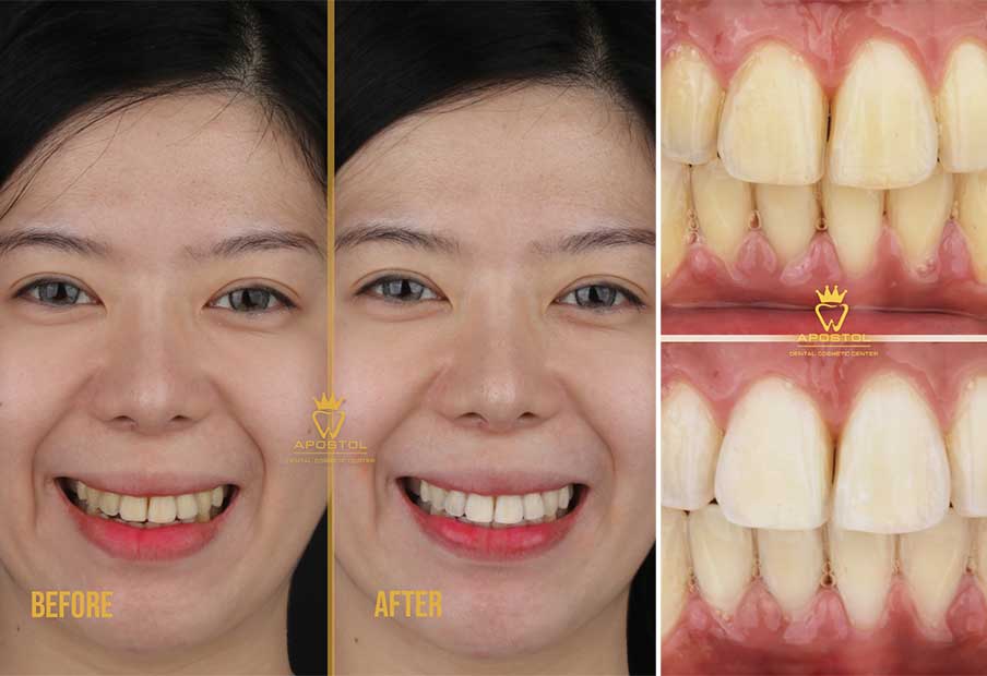 Teeth whitening lightens teeth and helps to remove stains and discoloration.